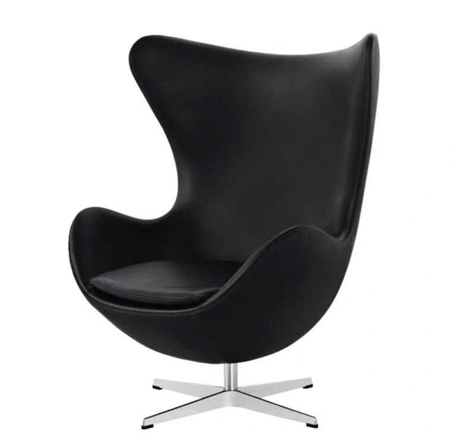 The Wilf armchair is an exceptional design inspired by Arne Jacobson's renowned creation, The Egg. It showcases a captivating sculptural form with Gregorian wings and a softly sloping seat, elegantly upholstered in faux leather. This chair offers unparalleled comfort and a feeling of security, embracing the user with its enveloping shape. Admired in various home decor magazines and films, the chair stands as a timeless accent piece that adds a touch of refinement to any modern or contemporary living area. With a retail price of $1800, it presents a true investment in style and luxury.