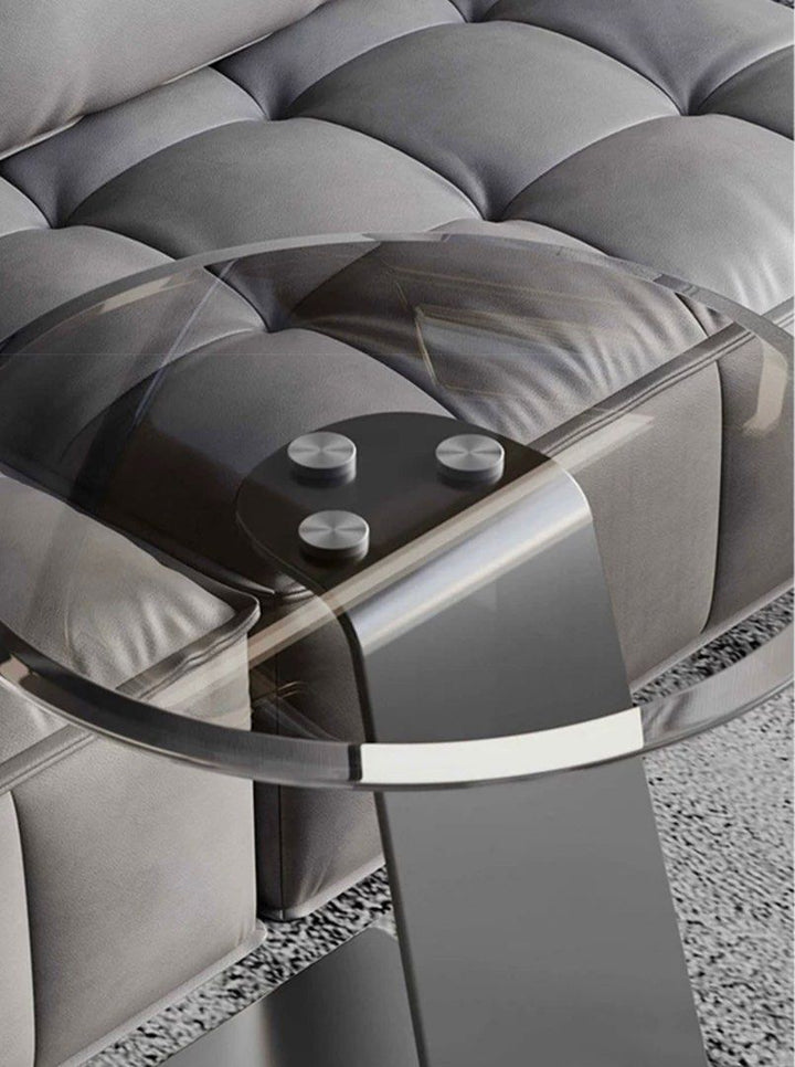 Here’s another description: “Looking for a end table that combines style and functionality? Look no further than our desk, made from high-quality glass with a sleek and modern design.