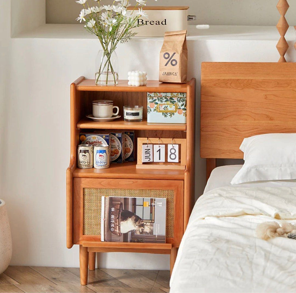 The RERIER Drawer Nightstand adds a touch of rustic charm to any bedroom with its combination of rustic tones and clean lines. Made of sturdy wood, it boasts a medium oak finish that showcases the wood grain for a cozy, natural look. The flip door drawer offers ample storage space for bedside essentials, while spindle detailing adds visual interest. The cut-out handles further enhance the nightstand’s natural charm.
