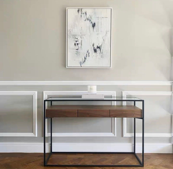 Introducing the perfect console table for your modern home. This table is designed with a spacious tabletop that offers ample space for your everyday needs. The stable structure ensures that it is strong enough to hold heavy items without wobbling.