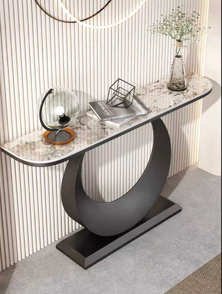 Looking for a stylish yet functional piece to elevate your home décor? Look no further than this modern glam marble console table. With its elegant shaped legs, this table will instantly add a touch of sophistication to any space. Perfect for small spaces, this table is ideal for entryways or any area where you need a functional surface. And not just a table, it is also a decorative piece of art that will enhance the beauty of your home. Dress it up with some flower pots or other exquisite decorations and transform it into a stunning focal point of your home décor. With its easy assembly, this table is a must-have for anyone who loves stylish and functional furniture.