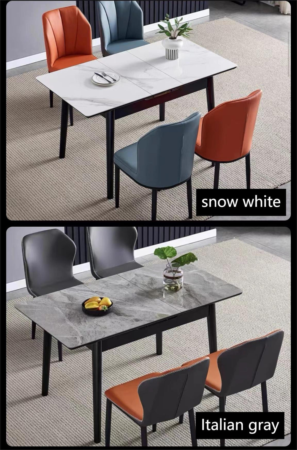 Engineered to provide outstanding durability and longevity, our table top is crafted from sintered stone, renowned for its strength, resistance to scratches, stains, and heat, ensuring that your table remains pristine even after years of use. Transform from a cozy family setting to a spacious entertainment space with the smooth extension mechanism. A solid wood leg adds a striking visual element. This contemporary dining table will be the centerpiece in any modern or minimalist dining space.