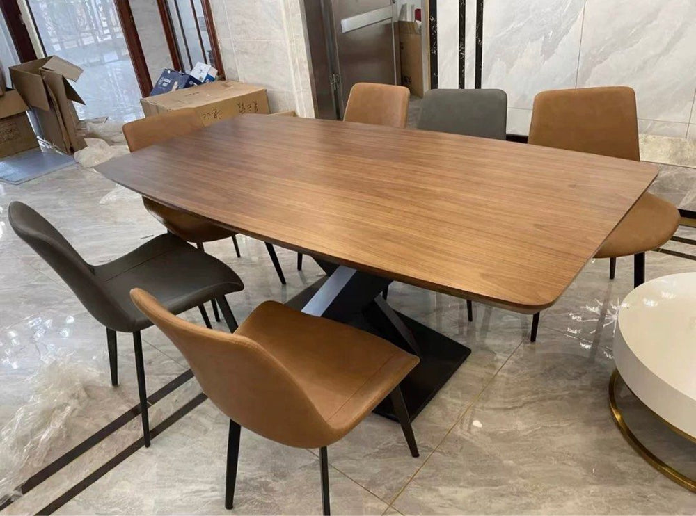 Elevate the lavishness of your home decor with the Walnut Wood Dining Table, which is designed to perfection. The table boasts a complete walnut wood desktop and distinctive black legs that exude a classic and refined appearance. The sleek table edges and sophisticated design make it an ideal addition to any home. Take possession of the TITUS Walnut Wood Dining Table now and add a touch of sophistication to your living space.