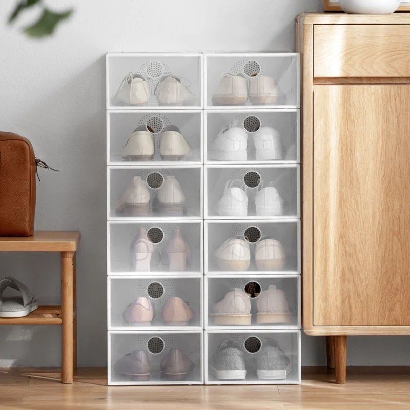 The storage box is made of high-quality transparent plastic, which is clearly visible.It can be stacked for easy organization and storage, keeping your entryways clean and tidy. The storage box has ventilation holes to ensure air circulation and prevent peculiar smells. Transparent windows can be used to view items, and multiple units can be stacked to maximize storage.