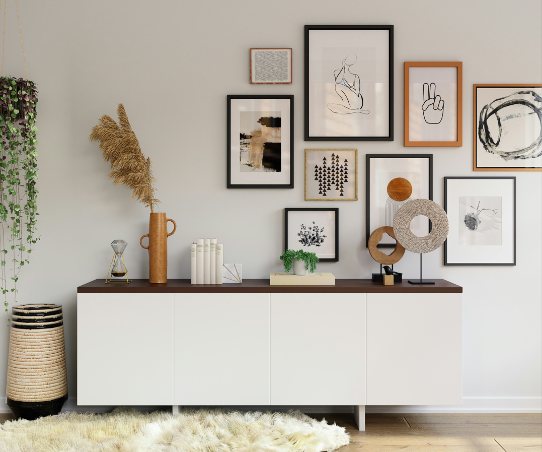 Transform your living room decor and make a striking impression with the GOTEWL Modern Japandi TV Console. This exquisite piece of furniture, influenced by Japan-style design, presents a choice between two distinct styles and is constructed using laminated wood.